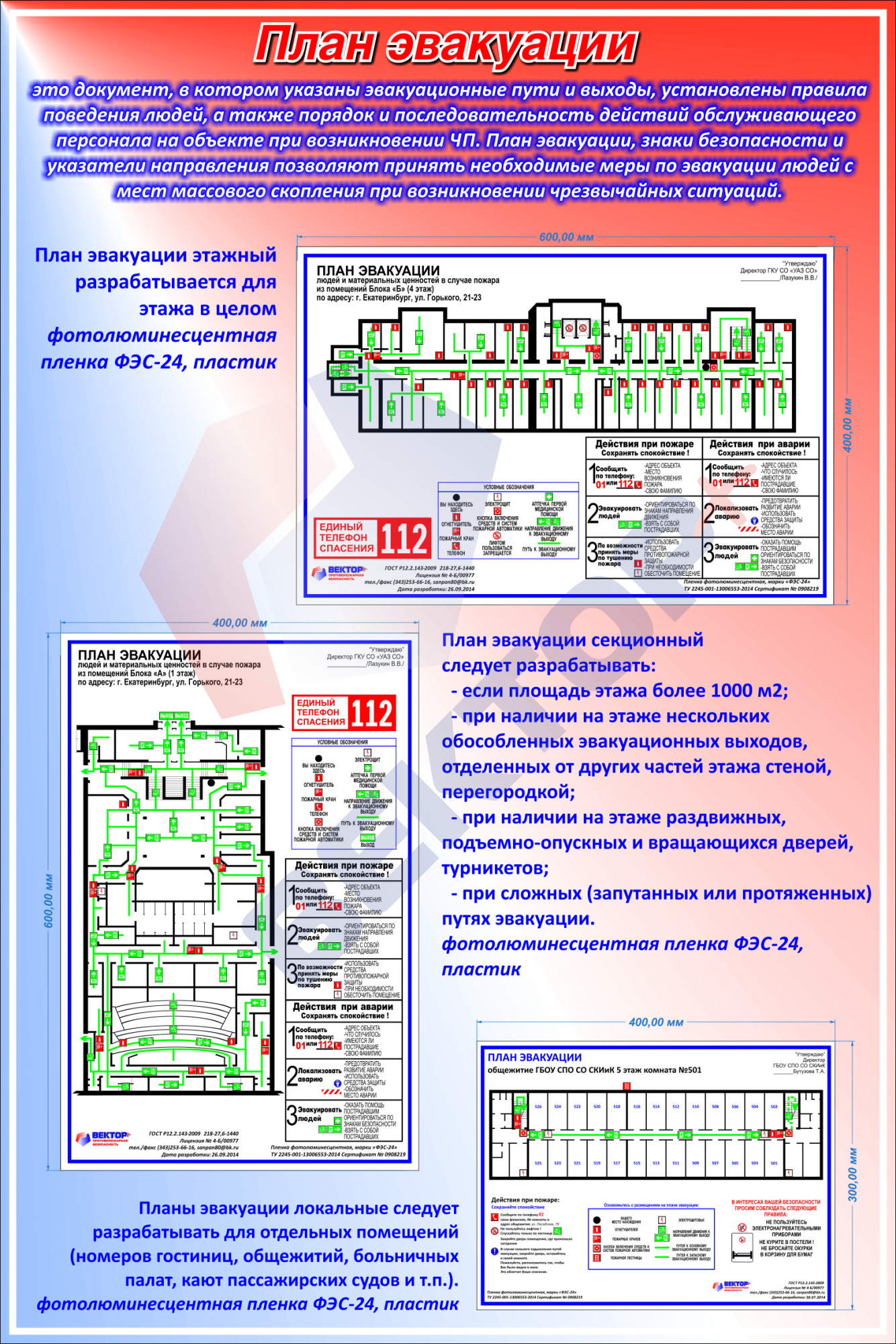 | План эвакуации этажный / секционный | от 2800 рублей за шт. | 2-3 дня |