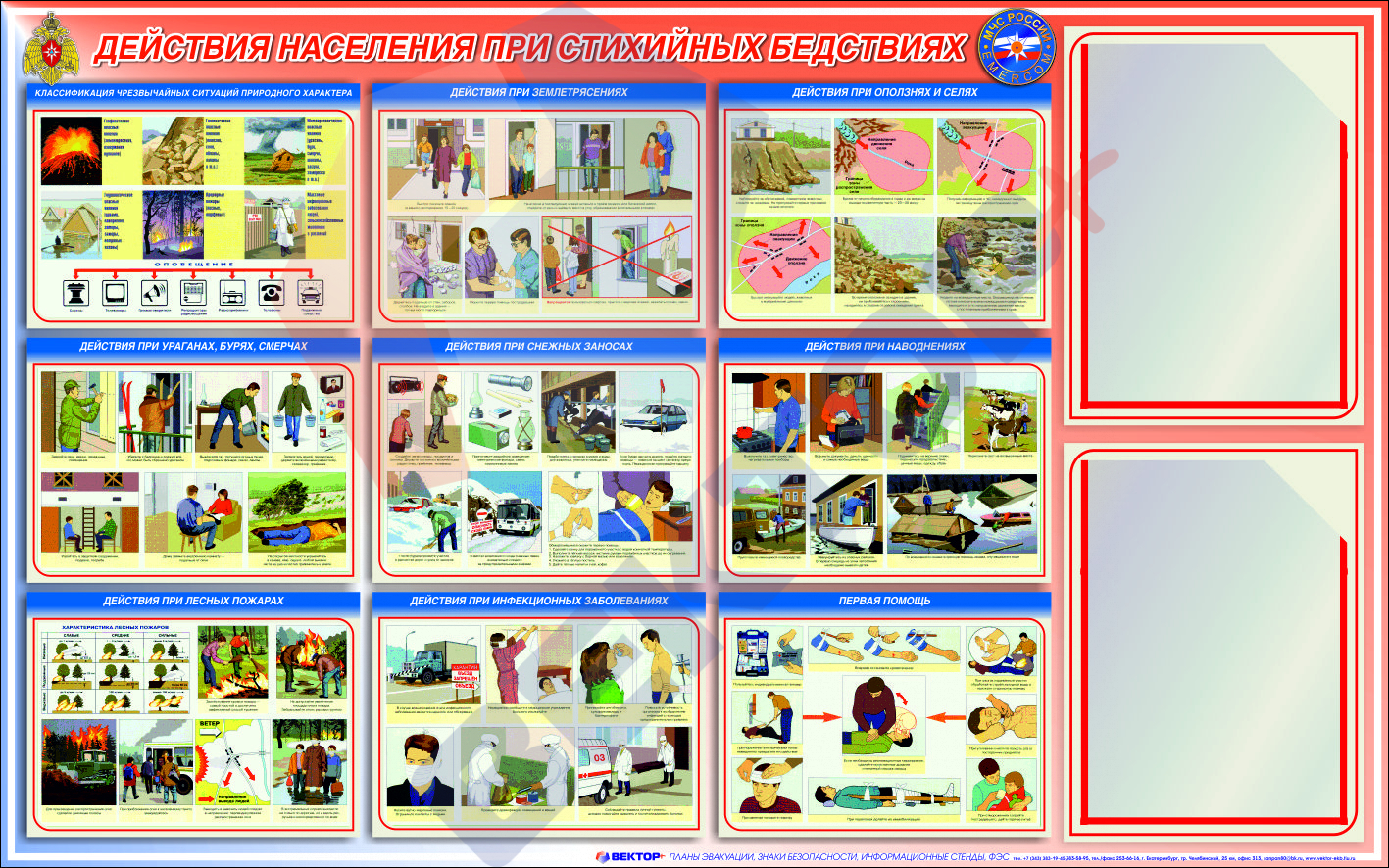 СТЕНД Действия населения при стихийных бедствиях 750х1200х3мм 2КВ