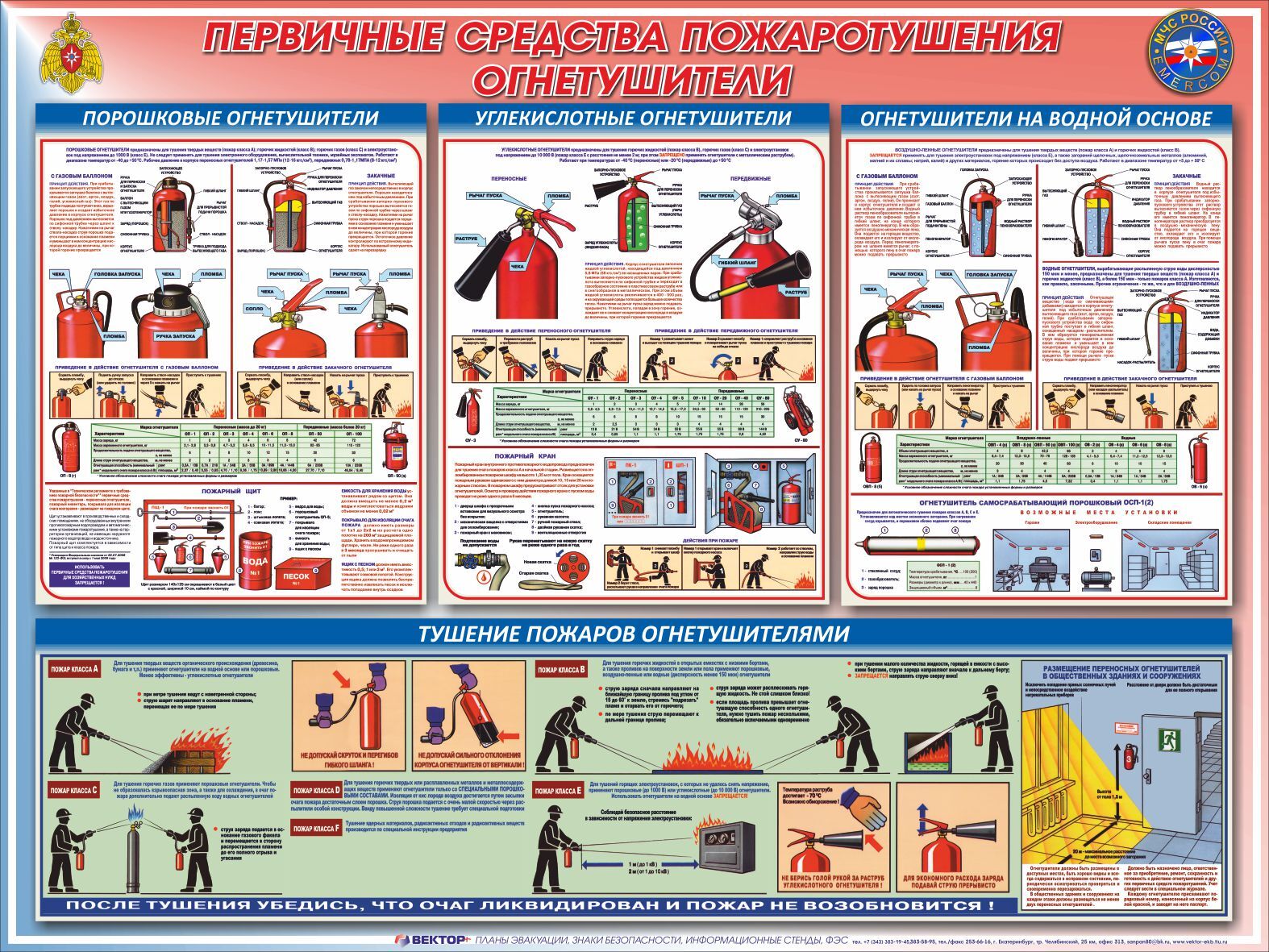 СТЕНДЫ Первичные средства пожаротушения (Огнетушители) 750х1000х3мм материал ПВХ