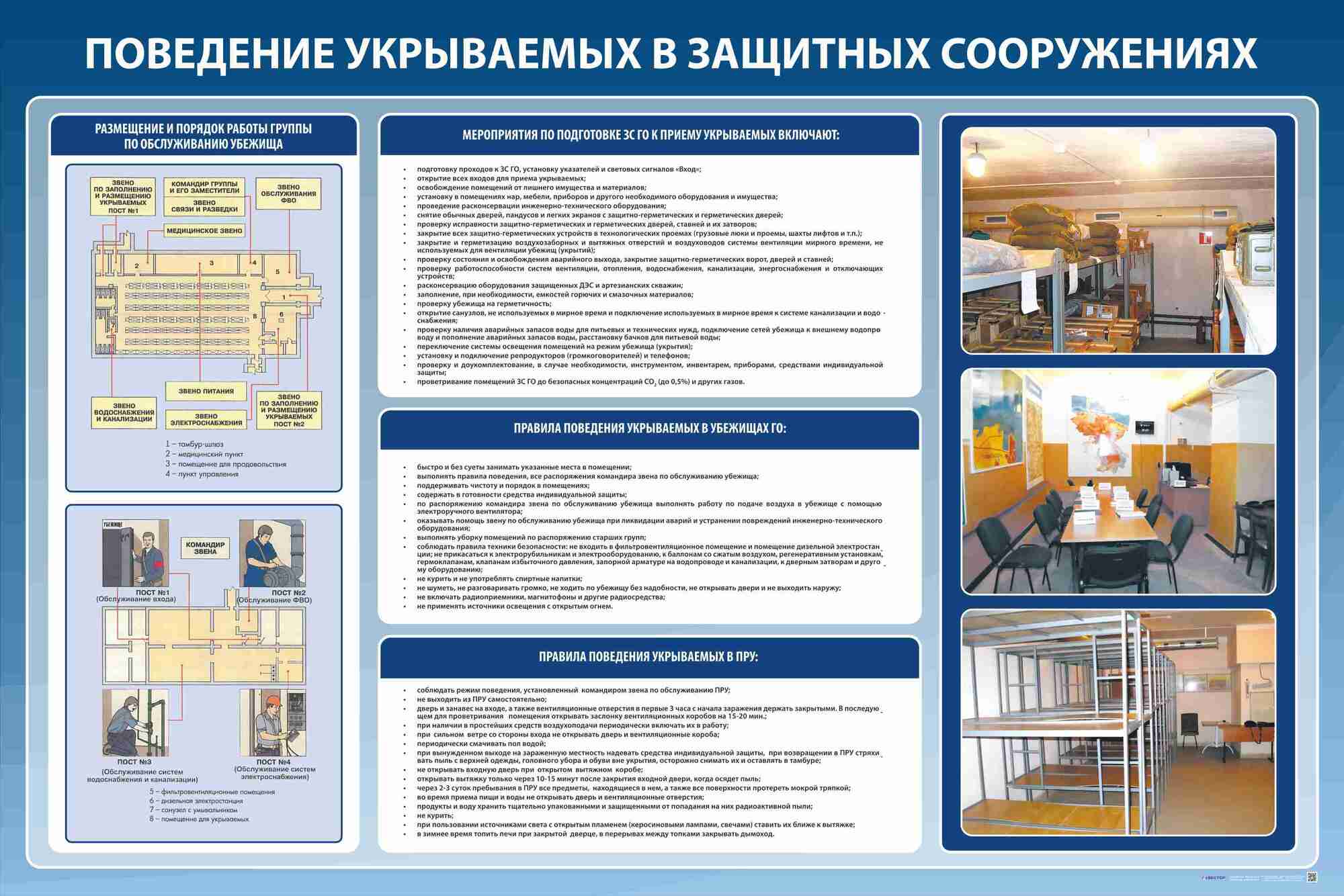 СТЕНД Поведение укрываемых в защитных сооружениях 1000х1500х5мм Материал ПВХ